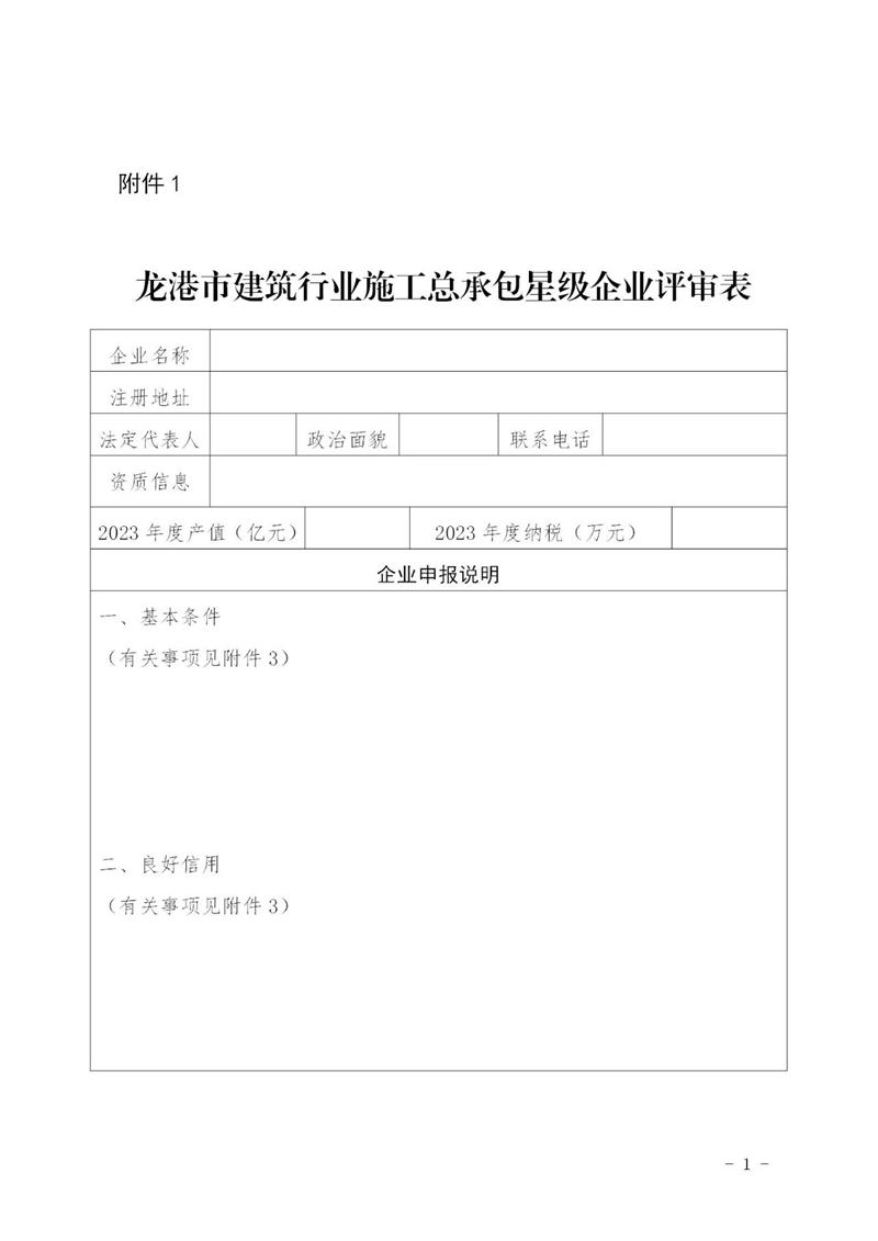 附件:1、龙港市建筑业施工总承包星级企业评审表